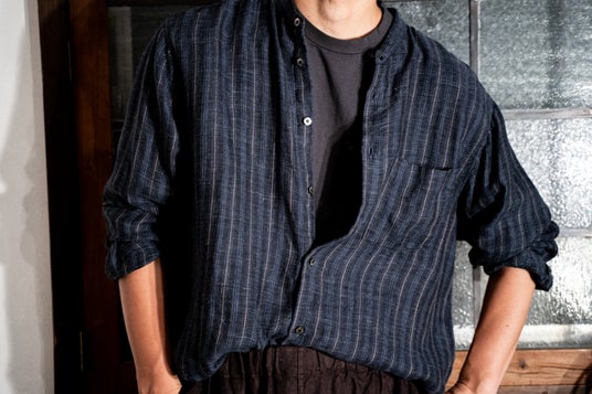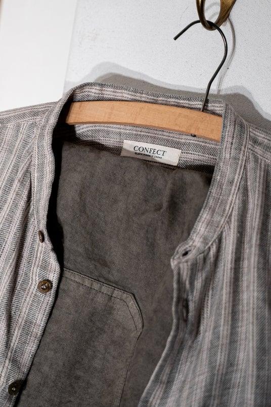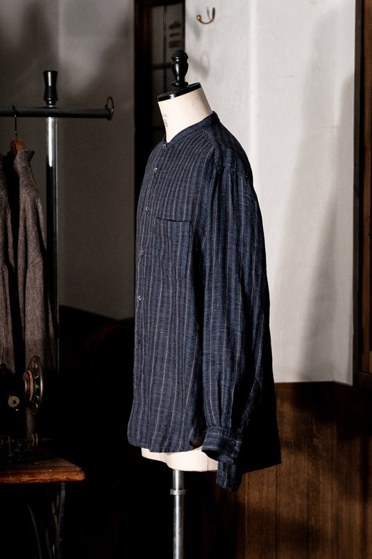 ■Linen Stripe Band Collar Shirt (02243-0019)