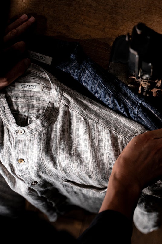 CONFECTは “SLOW MADE IN JAPAN” をコンセプトに、国内生産による丁寧かつこだわりのモノづくりを展開しているメンズファッションブランドです。CONFECTの服は、リネン素材をはじめとした上質な天然素材を使用し、着心地や素材感にとことんこだわりながら日本のものづくりの精神を大切に、一つ一つ丁寧に生産しています。商品のほとんどは、昭和25年創業の国内自社工場で縫製。着るほどに体になじみ、自分らしく育てていけるのが特徴です。