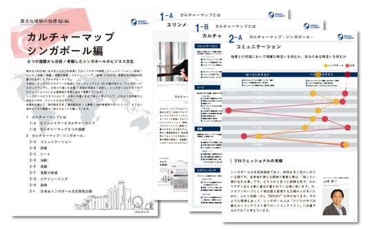 異文化理解のフレームワーク「カルチャーマップ」から“シンガポール”をピックアップし、8つの指標を説明するとともに、日本との違いを定量/定性の両面から分析し、シンガポールビジネスのプロフェッショナルによる8つの指標毎の考察を盛り込んでいます。