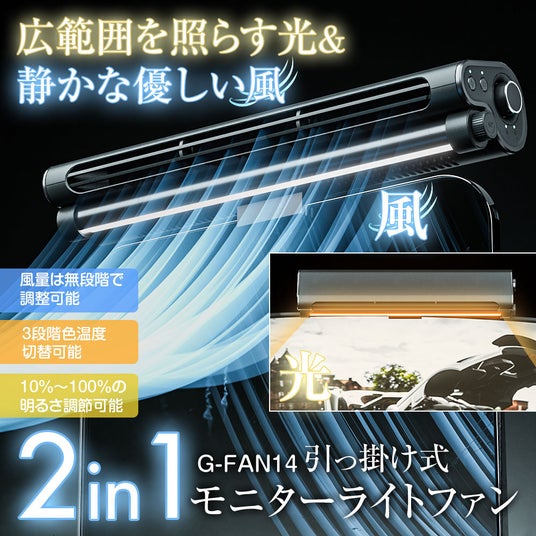 モニターライトと扇風機が一体化。PCゲームや仕事などでご使用いただくと快適で過ごしやすい空間に変わります。