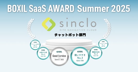 株式会社エフ・コード(本社:東京都新宿区、代表取締役社長:工藤 勉、証券コード:9211、以下「当社」)が提供する「チャットボット型Web接客ツールsinclo」(以下、「sinclo」) は、スマートキャンプ株式会社(以下「スマートキャンプ」)が主催する「BOXIL SaaS AWARD Summer 2025」のチャットボット部門で「Good Service」「使いやすさNo.1」「お役立ち度No.1」「機能満足度No.1」「サービスの安定性No.1」「カスタマイズ性No.1」に選出されました。