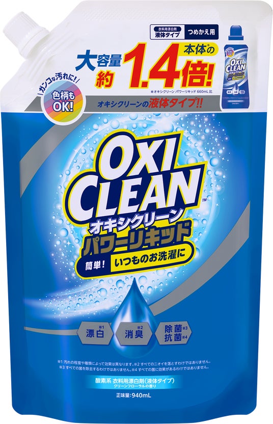 株式会社グラフィコ(代表取締役:マイケル・リード)は、酸素系漂白剤「オキシクリーン」シリーズより、液体タイプの酸素系漂白剤「オキシクリーン パワーリキッド」の「大容量つめかえ用 940mL」を全国のドラッグストア等小売店やオンラインストア向けに2025年6月2日(月)より順次出荷いたします。