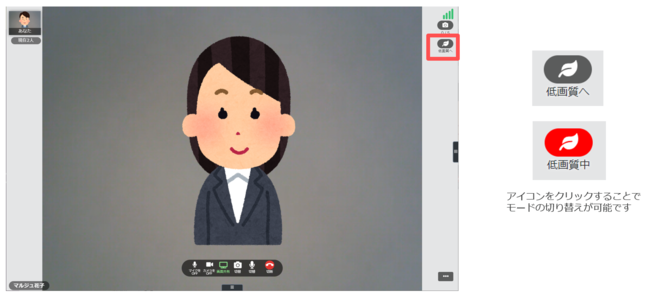 ※低画質モードをクリックすると、面接の参加者(面接官・応募者)全員に低画質モードが反映されます。