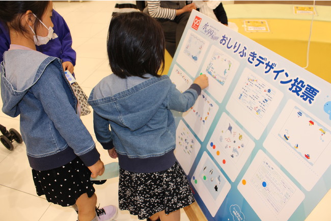 赤ちゃん本舗は、世界中みんなで海のことを考える6月8日の「世界海洋デー」に向け、お子さまを対象にアカチャンホンポららぽーとEXPOCITY店で「海」をモチーフにした限定パッケージのデザイン人気投票を実施しました。お子さまがイルカやペンギン、お魚など自分の好きな生き物が描いてあるデザインに投票し、10種類の中から投票数の多かった5種類のデザインが選ばれました。