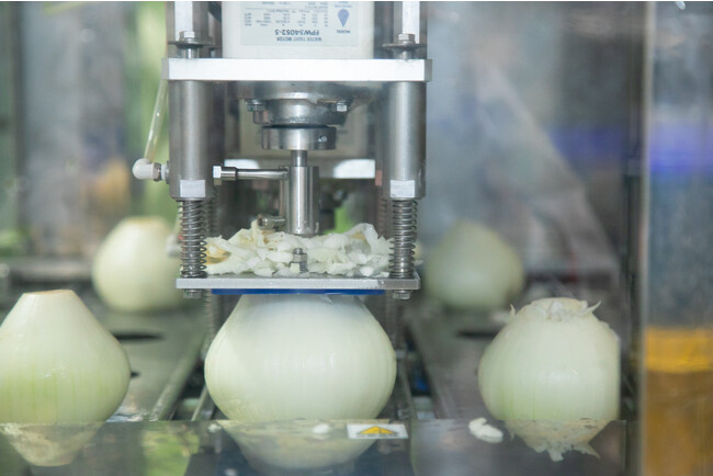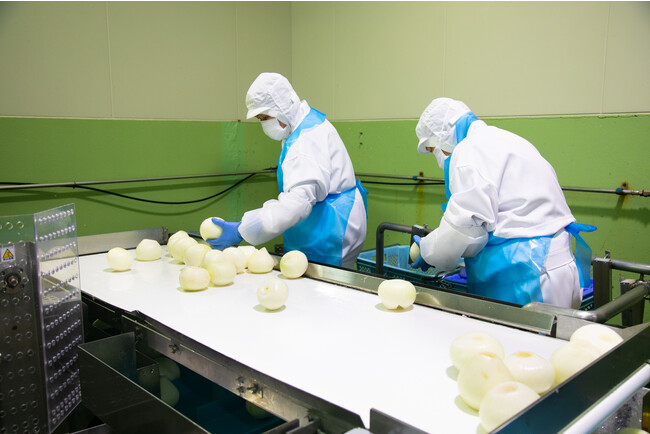 また、東京工場は2023年2月からASTRA FOOD PLAN 株式会社(本社:埼玉県富士見市、代表取締役社長:加納 千裕 以下ASTRA FOOD PLAN)と共に、東京工場で発生する規格外の玉ねぎ端材を乾燥処理して食用パウダーとして利用するアップサイクルの実証実験を行なっています。現在、玉ねぎ端材はASTRA FOOD PLANに冷蔵発送し、同社が開発した食品の乾燥・殺菌装置『過熱蒸煎機』にかけてアップサイクルしています。2024年2月以降は東京工場に『過熱蒸煎機』を導入し、東京工場で玉ねぎの芯を取り除く加工から粉末化までを行い、規格外の食材の有効活用を促進します。