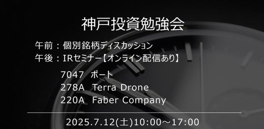 株式会社Faber Company(ファベルカンパニー/本社:東京都港区、代表取締役:稲次正樹、古澤暢央、以下「当社」)の代表取締役執行役員Founder古澤暢央が、神戸投資勉強会主催の「個人投資家向けIRセミナー」に参加することとなりましたので、下記の通りお知らせいたします。