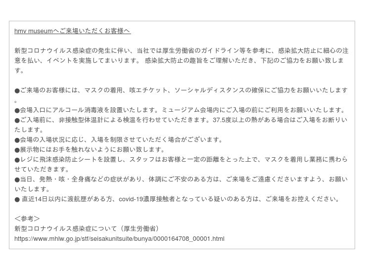 ※店舗の営業時間に準じ、hmv museumの営業日・営業時間が変更となる可能性もございます。