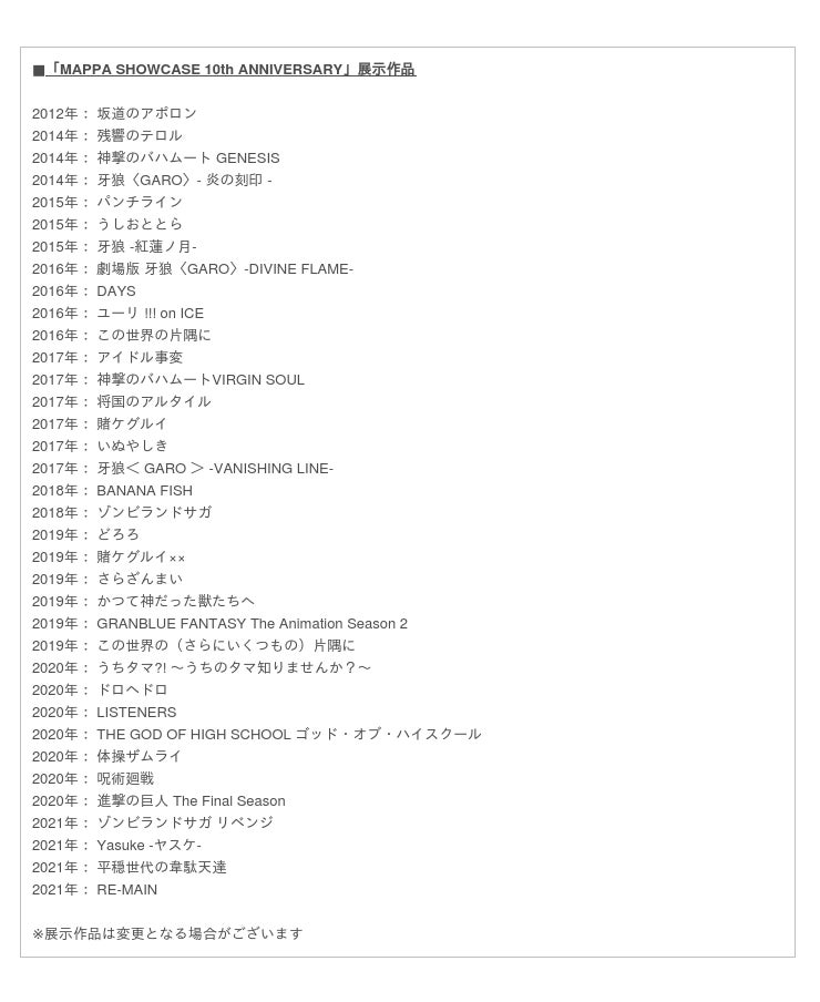 ▶「MAPPA SHOWCASE 10th ANNIVERSARY」大阪会場 特設ページ