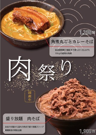 『角煮丸ごとカレーそば』『盛り放題 肉そば』どちらもこの機会にぜひご賞味ください!