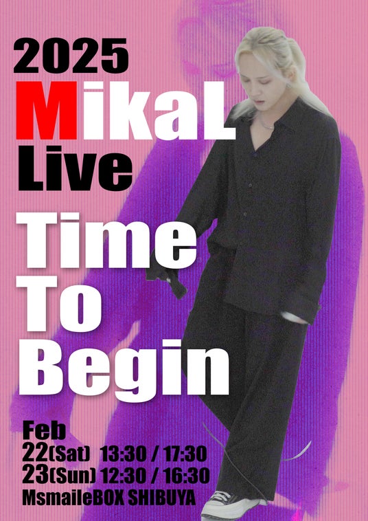 K-POPボーイズグループ大国男児のリーダーMIKAとしてデビューから多くのファンに愛され活動し2024年からソロアーティストとして日本で、LIVE、イベント、ミュージカル、朗読劇など精力的に活動しているMikaL(ミカエル)の、2025年のスタートとなるLIVEは、2/22(土)・23(日)にMsmilebox渋谷にて1日2公演、計4公演の開催が決定!