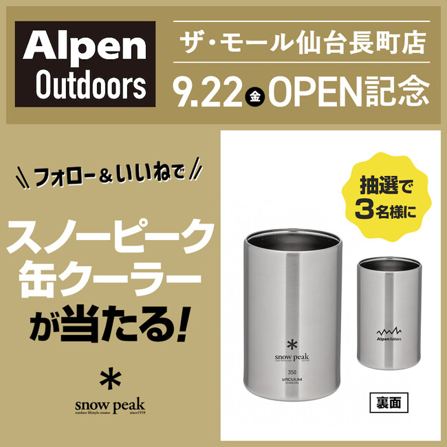 内容 : 『Alpen Outdoorsザ・モール仙台長町店』のオープンを記念して、「いいね&フォロー」で
