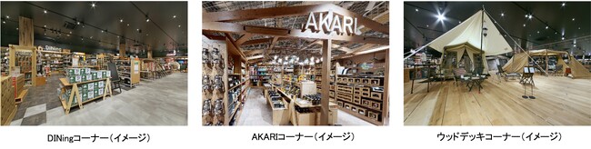 従来の「LIVing」「DINing」「SLEEPing」コーナーに加え、オイルランタンやキャンドルランタンの品揃えを拡充した「AKARI」コーナーなど、多様なシーンに沿った各コーナーで、よりリアルなキャンプシーンや実際の使用感をイメージしながらお買い物を楽しんでいただける売り場を実現。