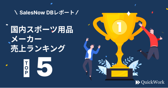 「データとテクノロジーで、働き方を変革する。」をミッションに掲げ、日本全国500万社以上の企業データを基盤に営業の効率化を支援する「SalesNow」を展開してきた株式会社QuickWork(本社:東京都渋谷区、代表取締役:村岡功規、以下「QuickWork」)は、日本全国500万社以上の企業情報を網羅した日本最大級のデータベースを誇る「SalesNow DB」において、国内スポーツ用品メーカー売上ランキングTOP5を抽出したのでお知らせします。