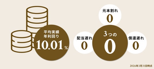 償還済みファンドの平均年利回りは10.01%(2026年3月31日時点)と、業界最高水準を誇ります。