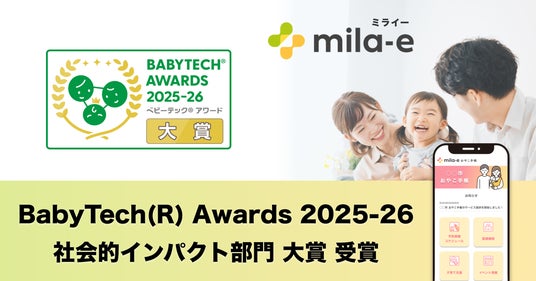 自治体向けサービスを開発する株式会社ミラボ(本社:東京都千代田区、代表取締役:谷川一也、以下「ミラボ」)の自治体DX・母子保健DXサービス「mila-e(ミライー)」が、BabyTech(R) Awards 2025-26 において、社会的インパクト部門の最優秀商品に贈られる「BabyTech(R) Awards 2025-26 社会的インパクト部門 大賞」を受賞したことをお知らせします。