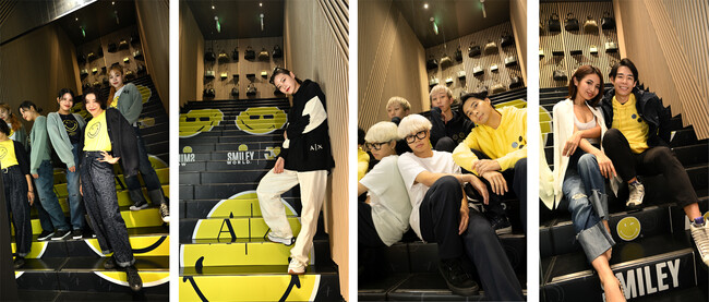 10月1日に全世界に先駆けて日本先行発売となったスマイリーワールド(R)コラボレーションコレクションや新作アイテムを着用したゲストも原宿店に大勢来場しました。パフォーマンスを披露したダンサーのKAZANEさん、Miyuさん、YDK Apartmentさんをはじめ、多様性を認め合う素晴らしさをブランドメッセージとして発信し続けているA|Xらしく、それぞれのフィールドで個性を発揮し第一線で活躍をしているゲストたちが原宿1周年を盛大にお祝いしました。