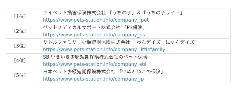 《株式会社エレメント》(本社:神奈川県川崎市、代表取締役:近藤勉)は、ペット保険比較サイト 徹底比較「ペット保険STATION( https://www.pets-station.info/ )」において、【2024年8月最新版】ペット保険おすすめ人気ランキングTOP5を発表いたしました。