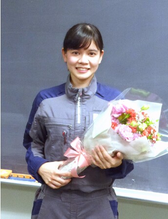 航空技術者プログラムの第1期生で、2017年3月に情報通信システム工学科を卒業した座間味 愛樹さんは、2017年4月に日本トランスオーシャン航空株式会社(以下、「JTA」という)に入社後、電装整備課に配属されました。航空機の安全な飛行に欠かせない電気・電子機器の整備を行う傍ら、日々国家試験の勉強を積み重ね、同プログラム履修生として、また、県内出身の女性として初となる一等航空整備士の試験に合格しました。