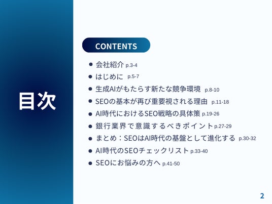 株式会社ベクトル(本社:東京都港区、代表取締役会長兼社長:西江 肇司、東証プライム:6058)の子会社であるOwned株式会社(東京都品川区、代表取締役社長、石井翔、以下「当社」)は、銀行業界向けに「AI時代のSEO戦略レポート」の2025年1月版(全50ページ)を無料公開いたしました。