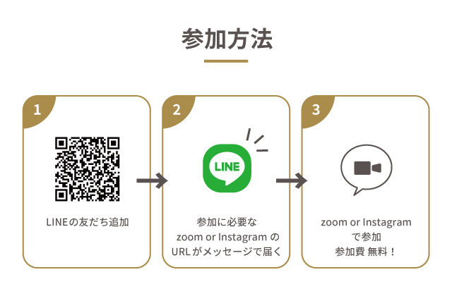 LINE友だち追加をすると、参加URLがメッセージで届きますので、そこから簡単に参加できます。