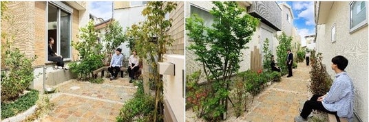 全20棟の分譲地に地役権を設定し共有地となる小路を通した計画。小路をただの通路とするのではなく、歩く、とどまる、遊ぶ、会話する、休む、などコミュニティの生まれる空間を創る。周辺道路からの安全を考慮した歩車分離計画と分譲地内のセミパブリックな共有地空間が各家族のつながりや子どもたちの地域愛の醸成につながることを期待した計画です。
