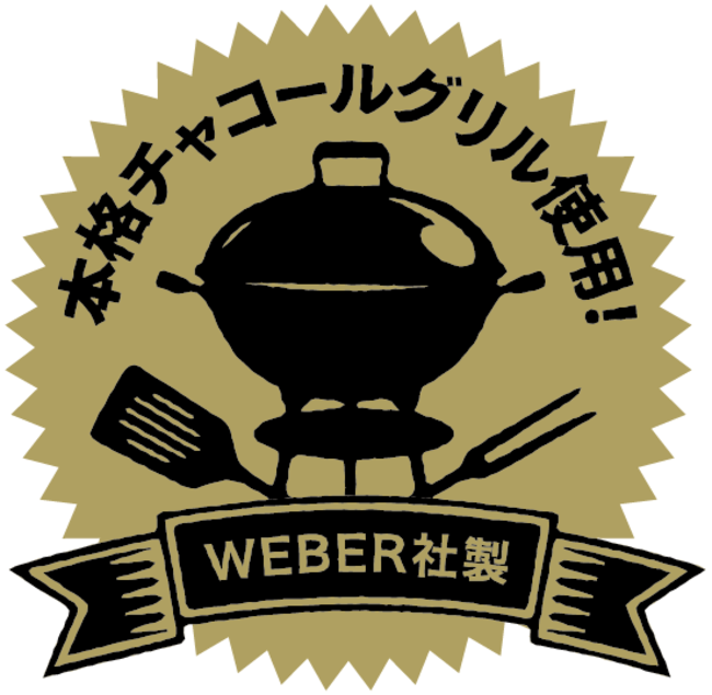 BBQの本場アメリカの人々に大定番のグリラーメーカー・Weber(ウェーバー)社のチャコールグリルを使用。このグリルは炭を使って焼くため、表面はカリッと焼きあがり、ほどよい焦げ目は素材の風味をよくしてくれます。さらに蓋をしめることで、炭からの熱を逃がさず対流によってゆっくりと全体を包み込んで調理されるので、厚切り肉や塊のお肉もじっくりとやわらかく、ジューシーに蒸し焼きすることが可能。蓋を開けた瞬間の香ばしい食材の香りを感じながら本格BBQをお楽しみいただけます。