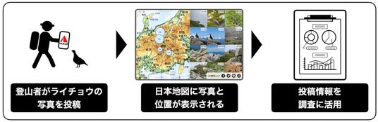 長野県は2020年から「ライチョウ保護スクラムプロジェクト」を展開し、2021年には目撃情報投稿アプリ「ライポス」の運用を開始。ヤマップは2022年6月に環境省と協定を締結し、登山者が投稿する写真のビッグデータを山岳生態系調査に活用する「みんなで守る山岳生態系プロジェクト」を始動し「ライチョウモニター」の運用を開始しました。