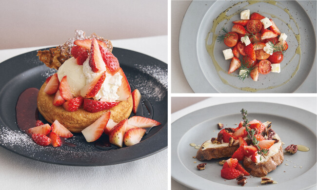 奈良県明日香村を代表する2つのいちごが同時に味わえる、コース限定のパンケーキ。