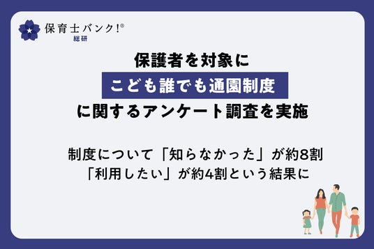 保育業界に特化した調査・研究を行う機関「保育士バンク!総研」を運営する株式会社ネクストビート(本社:東京都渋谷区、代表取締役:三原誠司)は、未就学児を持つ保護者を対象に「こども誰でも通園制度」に関するアンケート調査を実施いたしました。この度、調査結果をまとめましたので概要をお知らせします。