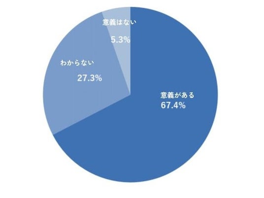 「意義がある」67.4%、「わからない」27.3%、「意義はない」5.3%という結果となった。