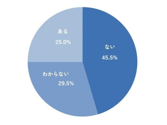「ある」25%、「わからない」29.5%、「ない」45.5%という結果となった。