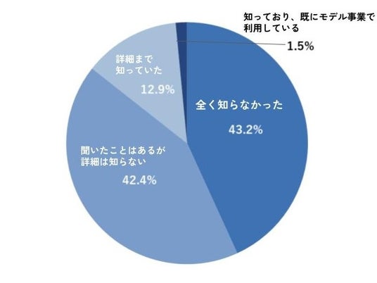 「全く知らなかった」43.2%、「聞いたことはあるが詳細は知らない」42.4%、「詳細まで知っていた」が12.9という結果になった。
