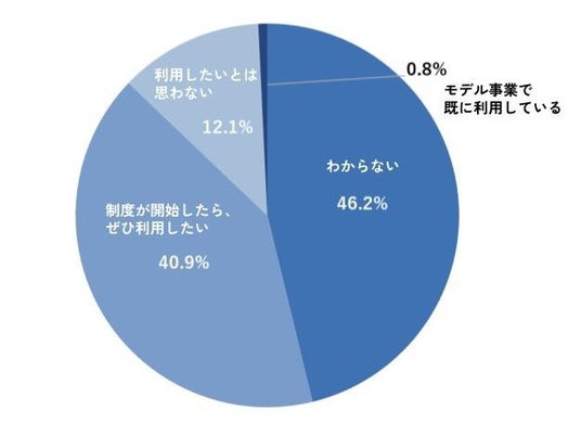 「わからない」46.2%、「制度が開始したらぜひ利用したい」が40.9%、「利用したいとは思わない」が12.1%となった。