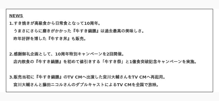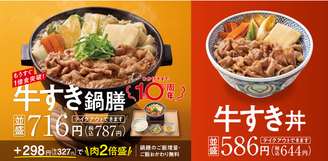さらに、『牛すき鍋膳』の販売食数が1億食を突破したタイミングで、お得さと美味しさを兼ね備えたキャンペーンを実施予定です。1億食突破記念キャンペーンに関しては、詳細が決定しましたら、別途ご案内申します。