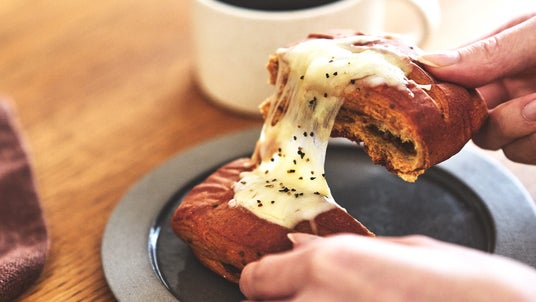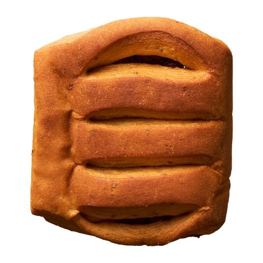 炒め玉ねぎの甘みをベースにしたスパイスが効いたカレーを、全粒粉や大豆を使用した生地で包んだ「揚げない」ベイクドカレーパン「BASE BREAD カレー」。今回のリニューアルでは、よりスパイス感を際立たせるため、隠し味としてパン生地にトマトを使用しています。原料素材の選定を何度も繰り返しながら、全粒粉とカレーのスパイシーさの絶妙なハーモニーを実現。トマトの甘みとスパイスの風味を楽しむことのできる本格スパイス香るカレーパンです。また、旧品の包餡形状から折込タイプの形状に改善したことで、一口目からカレーのスパイシーさをお楽しみいただけるようになりました。
