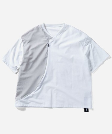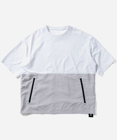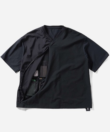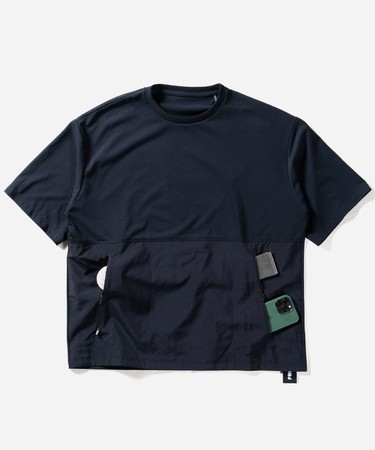 特 徴:シンプルな見た目の中に、収納力抜群の隠しポケットがあり、小物や携帯などが入るためカバンレスで行動することができるTシャツ。フロント部分に様々なものが入るポケットが隠れています。素材(メッシュ地)・寸法・用途等、デザイナーにより考え抜かれた仕様。