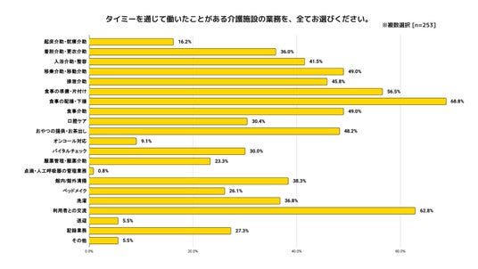 スキマバイトサービス「タイミー」を提供する株式会社タイミー(所在地:東京都港区、代表取締役:小川 嶺)は、タイミーを通じて介護事業所で働いたことのある働き手253名を対象に、「介護のスポットワーク」についてのアンケート調査を実施しました。