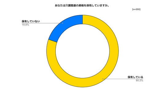 介護事業所でのスポットワーク経験者のうち、約80%が介護資格保有者