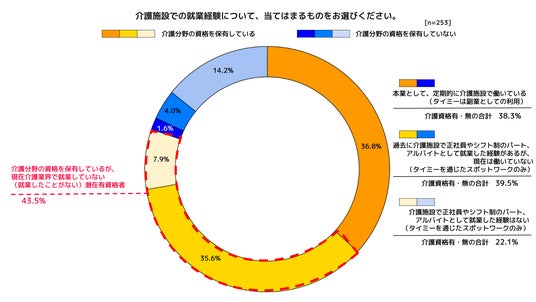介護資格を持っているが現在就業していない、または就業したことがない「潜在有資格者」は43.5%。自分の都合に合わせて働けるスポットワークが、「潜在有資格者」の復帰・参入に寄与していることが明らかに