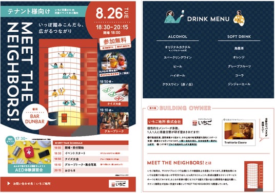 心を込めて現存不動産に新しい価値を創造する、心築(しんちく)を軸とした事業モデルを展開しています。いちごが保有するオフィスビル「いちご目黒ビル」にて、テナント様や近隣の皆さまをつなぐ「お隣り同士の交流会」として、Meet The Neighbors!というイベントを2025年8月26日に開催しました。