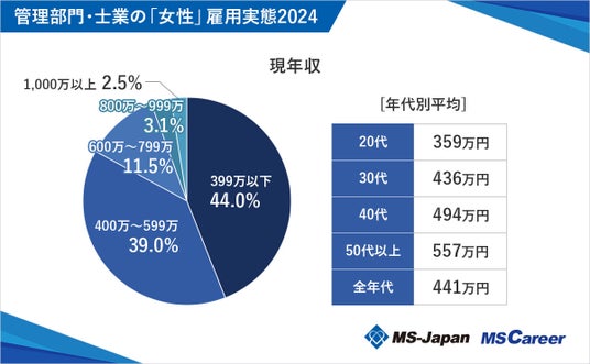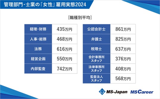 株式会社MS-Japan(本社:東京都千代田区 代表取締役会長兼社長CEO:有本隆浩/以下MS-Japan 証券コード:6539)が運営する、管理部門・士業の総合転職サービス「MS Career(エムエスキャリア)」は、4月10日(水)の「女性の日」にあわせ『女性の雇用実態』を発表しましたので、お知らせいたします。本調査は、管理部門・士業に特化した転職サービス「MS Agent」で2023年1月~12月に登録があった女性転職希望者のデータをもとに、調査結果をまとめています。