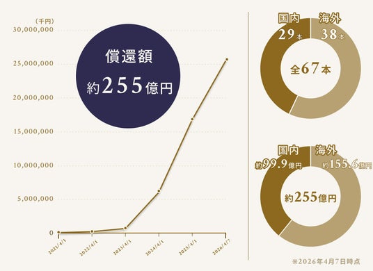 TECROWDでは今まで、67ファンド、合計約255億円の元本償還を実施しています。
