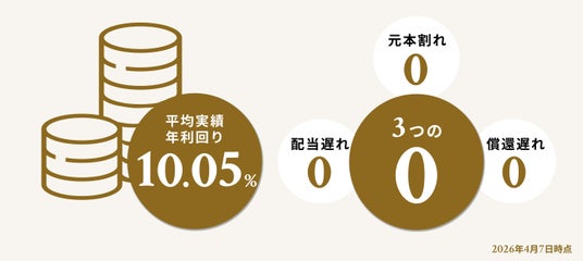 償還済みファンドの平均年利回りは10.05%(2026年4月7日時点)と、業界最高水準を誇ります。