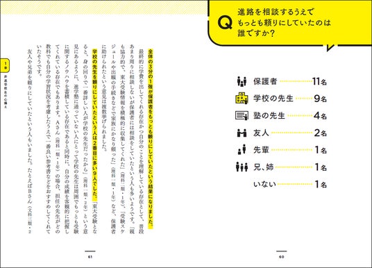 高校から1人しか東大に進学しない学校、これらの高校からの出身者が集まってできた団体が、本企画の著者であるUTFR(東京大学フロンティアランナーズ)です。本書は、UTFRのメンバーに大学受験に関するさまざまなアンケートをとり、その結果を踏まえた解説を入れることで汎用性の高い受験合格法とする一冊。一人で戦う受験生とその親に、非進学校から東大に合格する秘訣を紹介します。