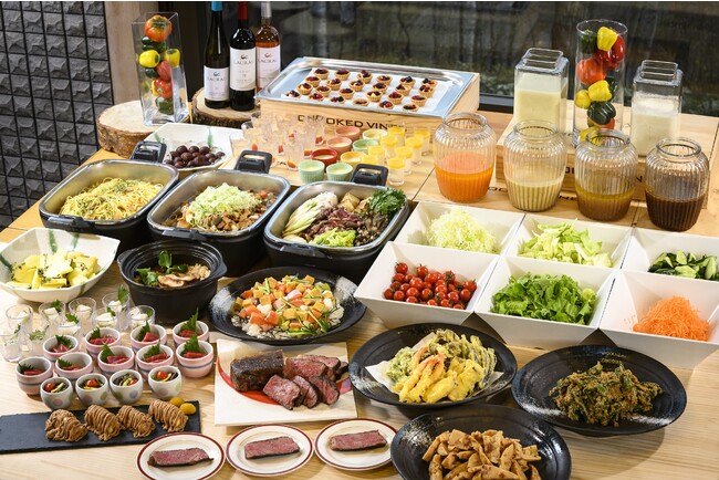 また、朝食の「高原の朝ごはんビュッフェ」では、旬の高原野菜、下仁田蒟蒻、信州そばなど、群馬と長野の食材がずらりとビュッフェラインを彩ります。4月からは「嬬恋ミニロールキャベツのラザーニャ」「飼料にこだわった青山の卵を使った冷製スフレ」も新登場しました。