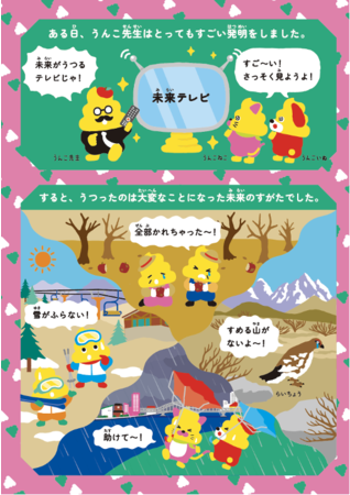 「うんこドリル“地球温暖化”(長野県編)」は、気候変動や地球温暖化について、長野県を担う次世代に楽しく学んでほしいという想いから、累計950万部を突破し小学生に圧倒的な認知を誇る「うんこドリル」シリーズと長野県地球温暖化防止活動推進センターがコラボして制作した冊子です。
