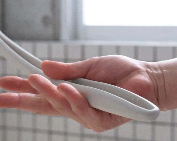 ハンドルは着脱式になり、背中も足先も、全身これ一つで洗えるように改良しました。