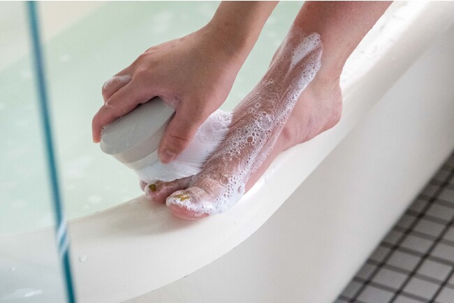 これまで以上に摩擦を感じることなく、なで洗うだけで、すっきりと気持ちよく汚れを落とすことができます。