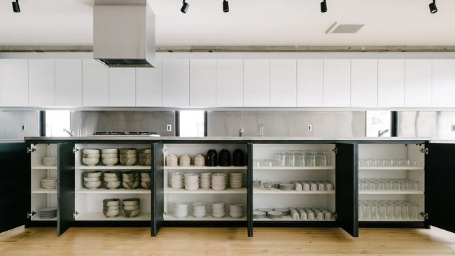 六本木のおしゃれなキッチン。食器と調理器具も完備