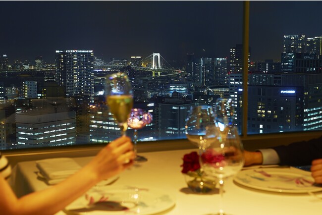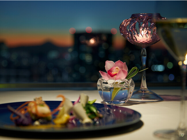 さらにオプションでワインペアリングをご用意。プリンスホテル エグゼクティブ シェフソムリエの市村義章おすすめのワインとホテル最上階からの眺望とともに2人のシェフが腕によりをかけて考案したメニューをご堪能いただけます。